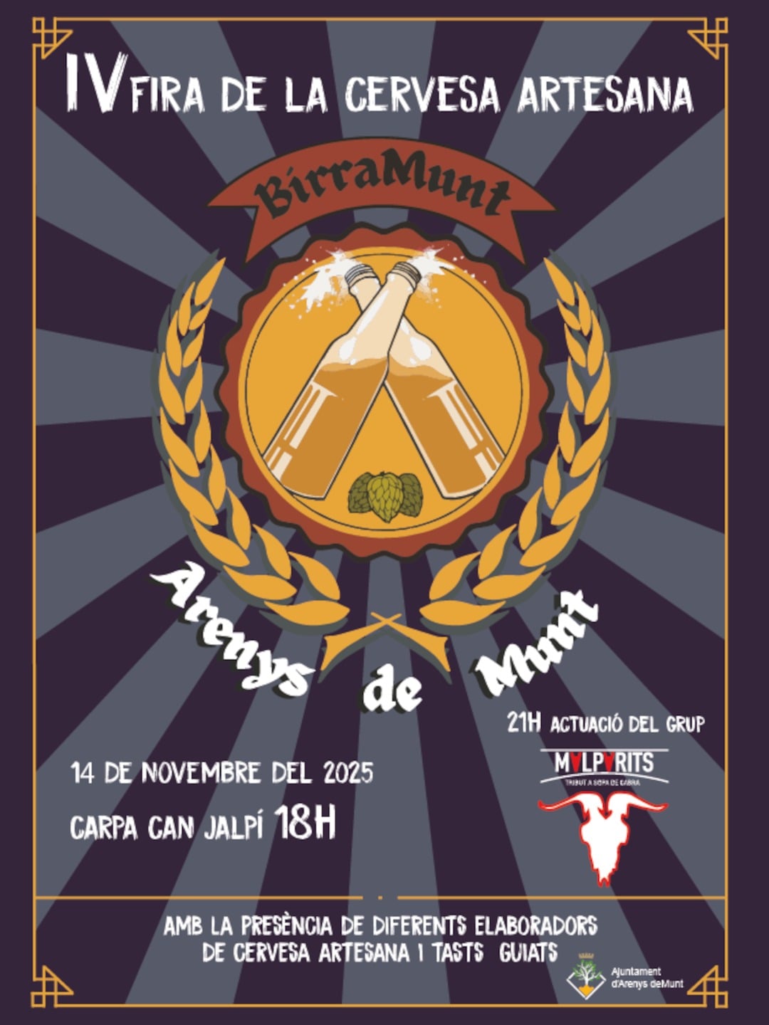 En el marc de la Festa Major de Sant Martí d’Arenys de Munt, quarta edició de Birramunt, la Fira de la Cervesa Artesana d’Arenys de Munt, que torna amb la presència de diferents productors de cervesa artesana, diversos tastos guiats i servei de menjar. No hi faltarà la música en directe, en aquesta ocasió a càrrec de Malparits, concert tribut a Sopa de Cabra.