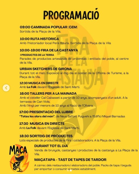 A Maçanet de Cabrenys, al cor de l’Alt Empordà, la tardor arriba amb aroma de castanyes i tradició. La Fira de la Castanya és una de les cites més esperades de la comarca, una jornada que celebra aquest fruit tan emblemàtic i tot el que representa: la natura, el territori i els sabors de temporada.