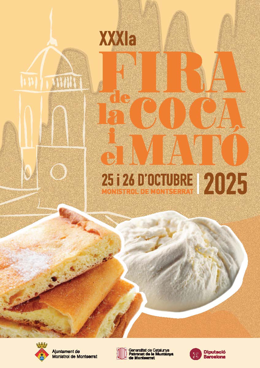 Una seixantena de parades d’alimentació i artesania, amb la coca i el mató com a principals protagonistes, faran gran la Fira de la Coca i el Mató de Monistrol de Montserrat, que celebra el seu trentè aniversari. Les actuacions musicals  s’incrementen i la zona d’atraccions, ubicada a l’esplanada de la llar d’avis, tindrà més oferta. Consulta el programa adjunt.