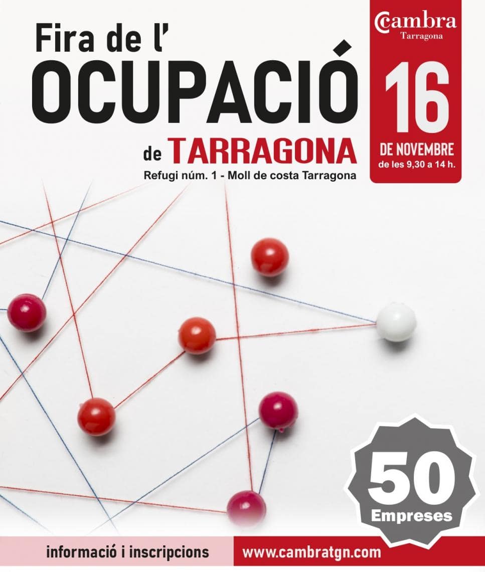 De les 9.30 a les 14.30 hores, tindrà lloc al Recinte Firal de Tarragona la XIII Fira de l’Ocupació de la Cambra.