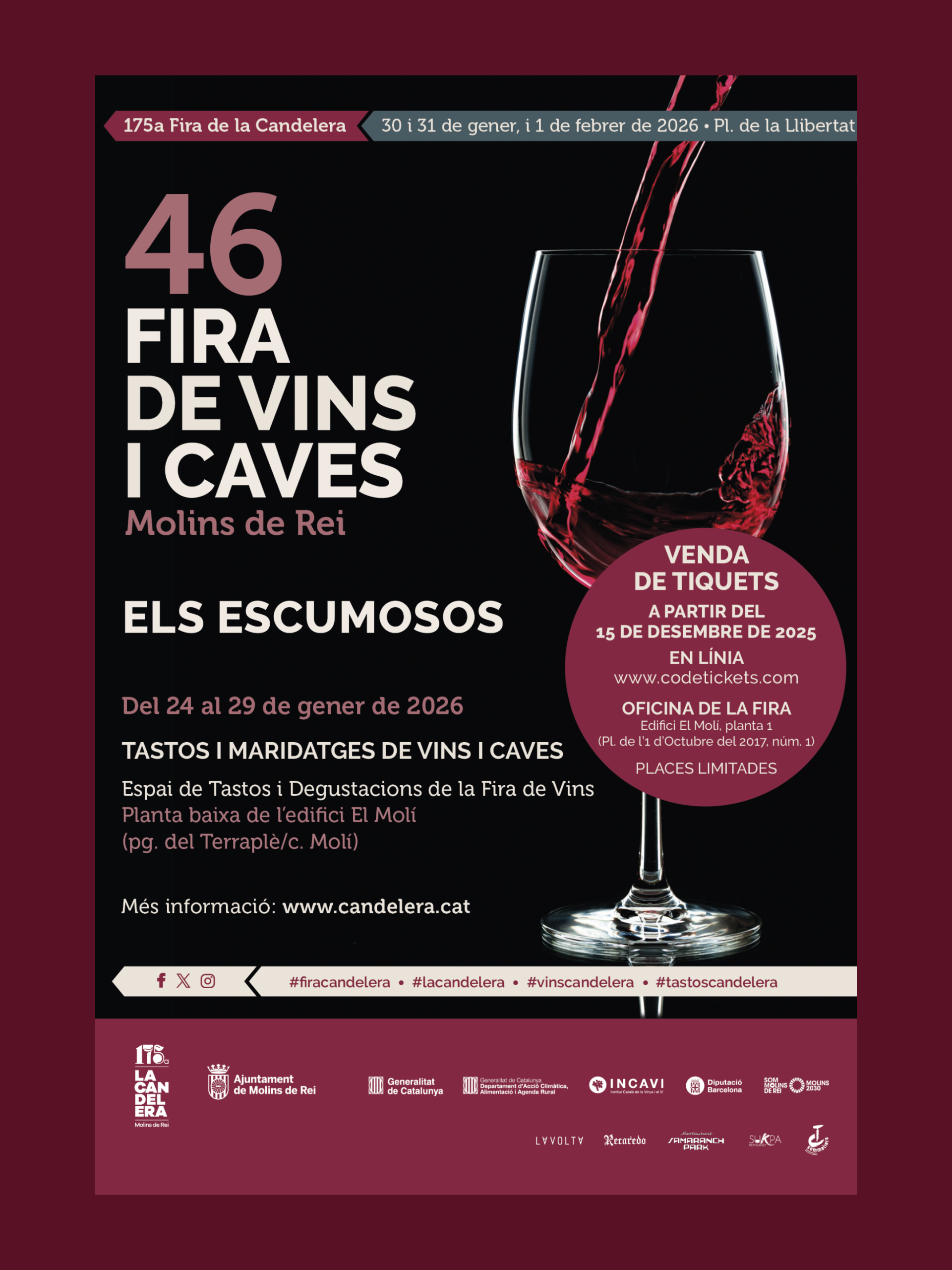 En el marc de la Fira de la Candelera de Molins de Rei, se celebra la Fira de Vins i Caves, amb tastos, degustacions i maridatges de vins i caves diversos.