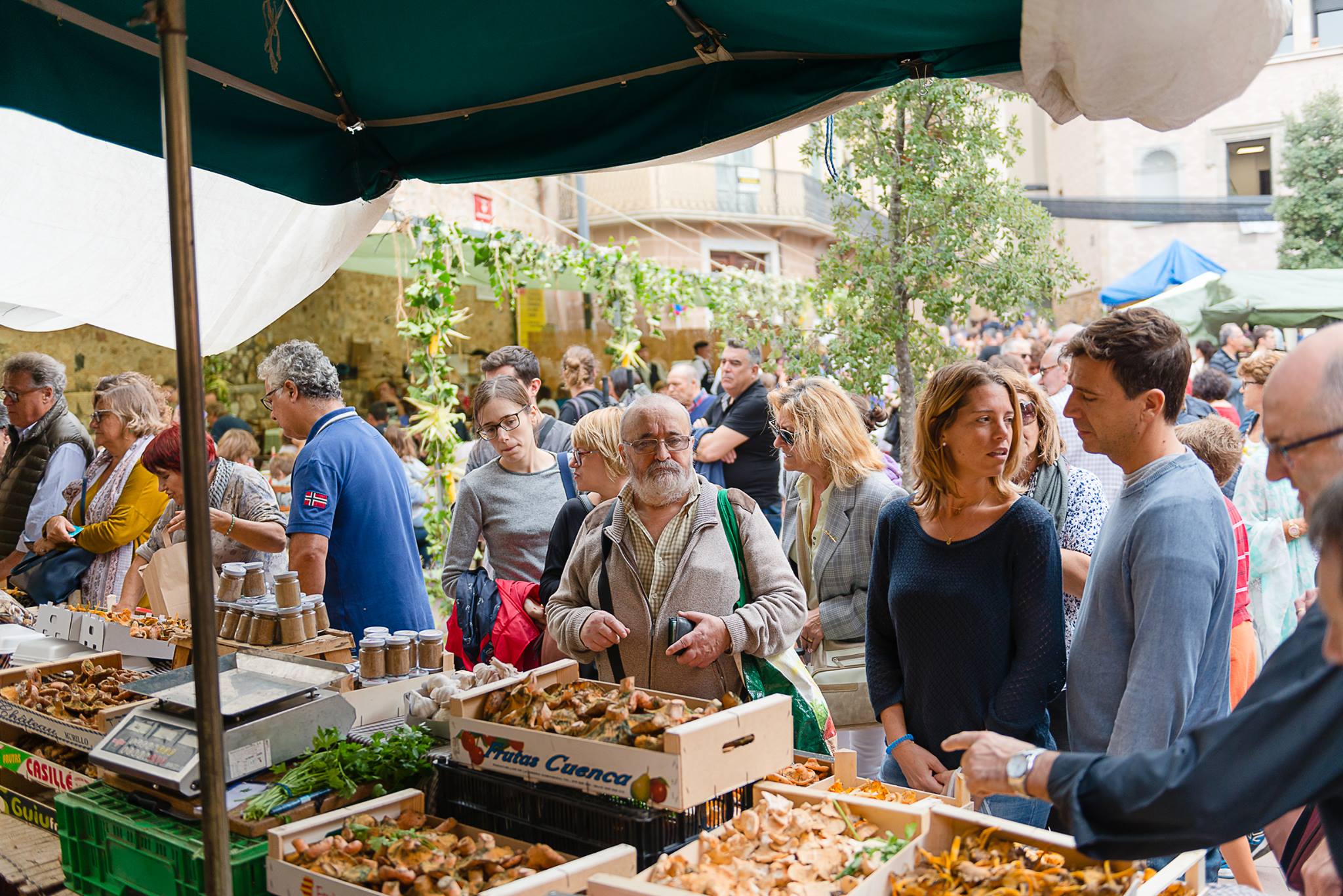 El mercat temàtic és el cor de la fira. Els expositors ofereixen bolets frescos, conserves, olis aromatitzats, melmelades i altres productes elaborats artesanalment. Els visitants poden conversar amb els productors, descobrir noves varietats i tastar sabors de la terra, tot en un ambient acollidor i familiar.