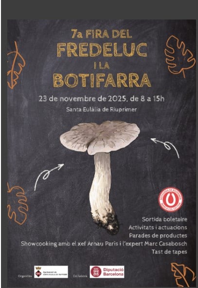 La Fira del Fredeluc i la Botifarra de Santa Eulàlia de Riuprimer és una de les grans cites gastronòmiques de la Plana de Vic, una festa que posa en valor els sabors de tardor i la tradició culinària d’aquest municipi osonenc. El fredeluc, un dels bolets més apreciats de la zona, i la botifarra, símbol de la cuina catalana, són els grans protagonistes d’una jornada plena d’activitats, bon ambient i aromes irresistibles.