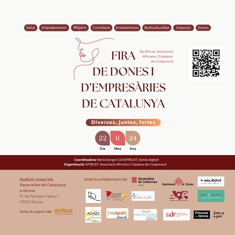 Fira de Dones i d’Empresàries de Catalunya a Girona, un esdeveniment clau per fomentar la igualtat de gènere a tots els àmbits: dins la família, en el món laboral, a la política, en l’esport… Es vol tornar a mirar de més a prop la situació de les dones i les empresàries catalanes, sigui quin sigui el seu origen. L’esdeveniment tindrà lloc a l’Auditori Josep Irla de Girona durant tot el dia.