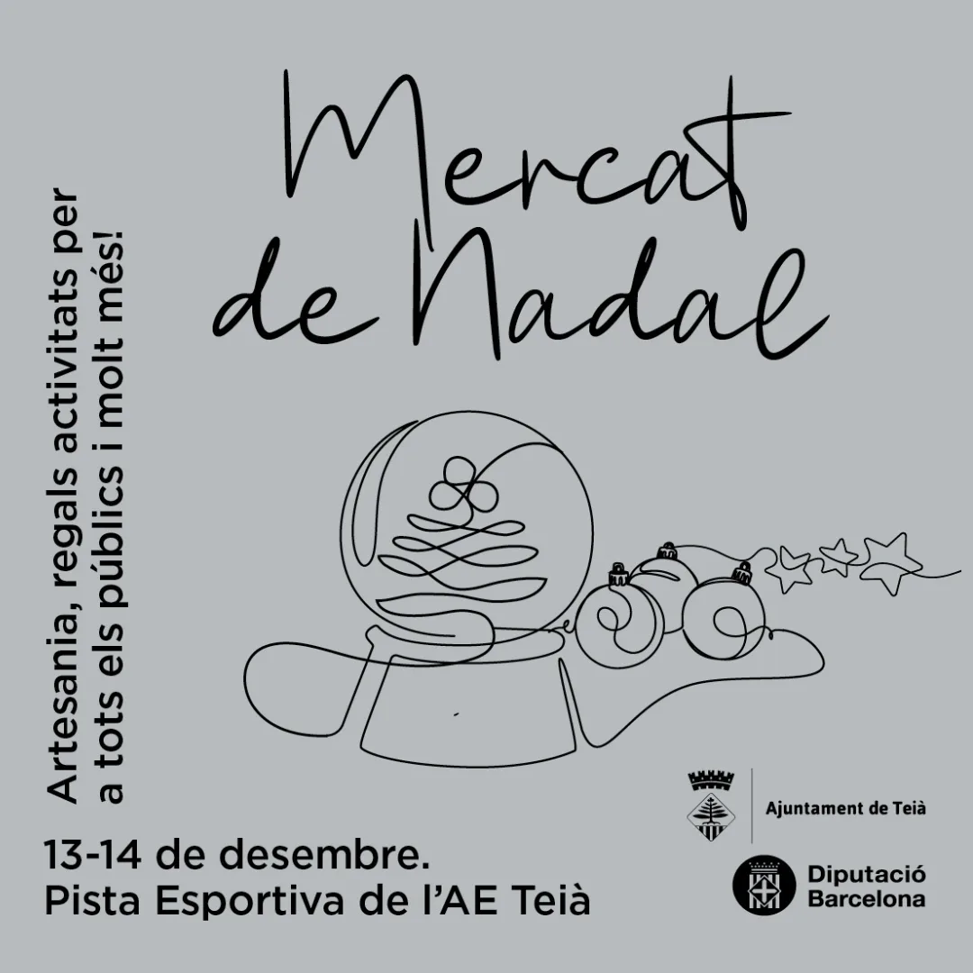 El Mercat de Nadal, que se celebrarà els dies 13 (de 11 a 14 h i de 16 a 20 h) i 14 de desembre (de 11 a 14 h) a la Pista Esportiva de l’AE Teià, marcarà l’inici d’aquest període festiu amb propostes culturals, comercials i familiars.