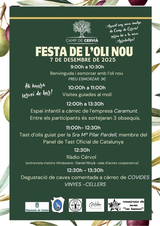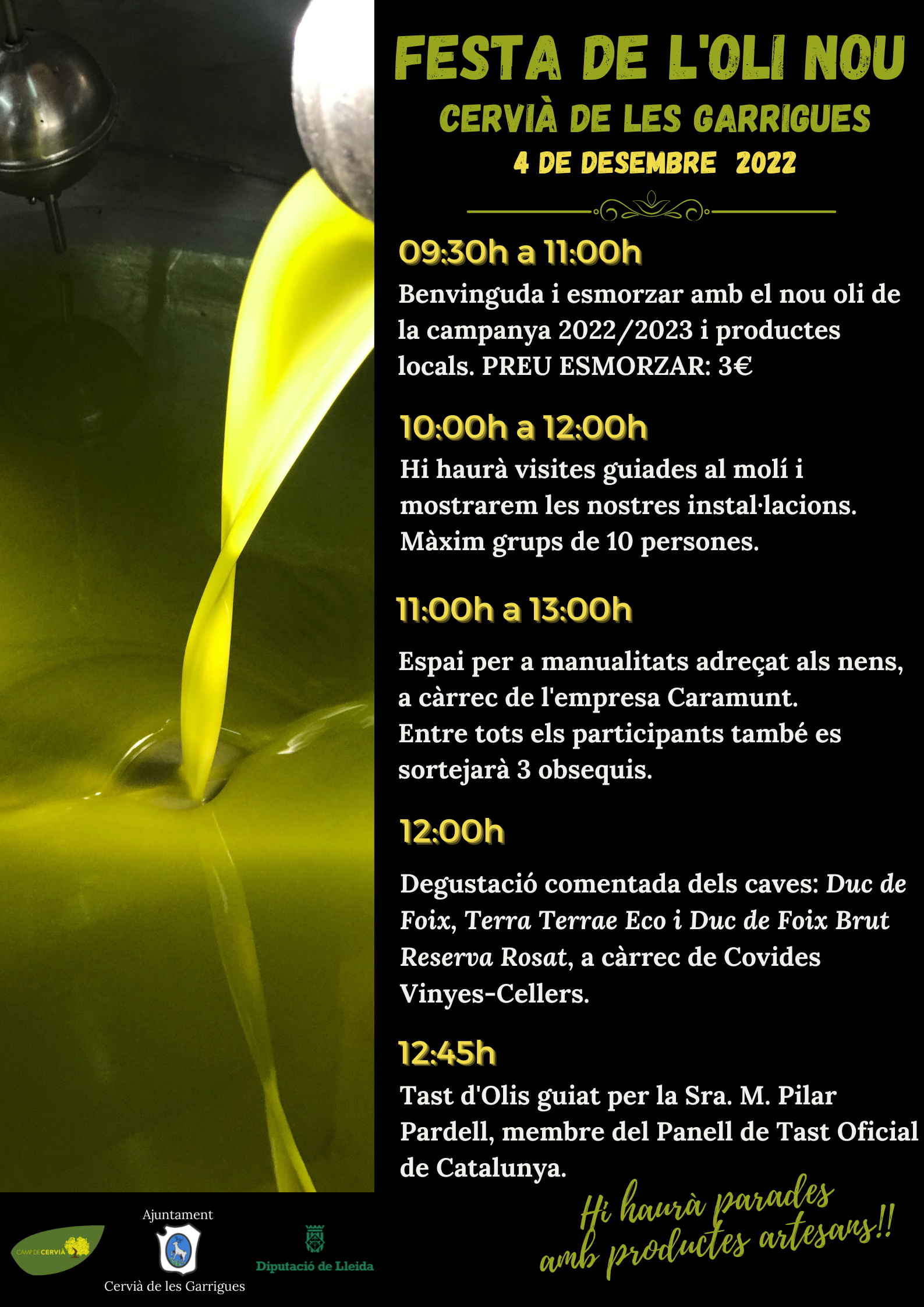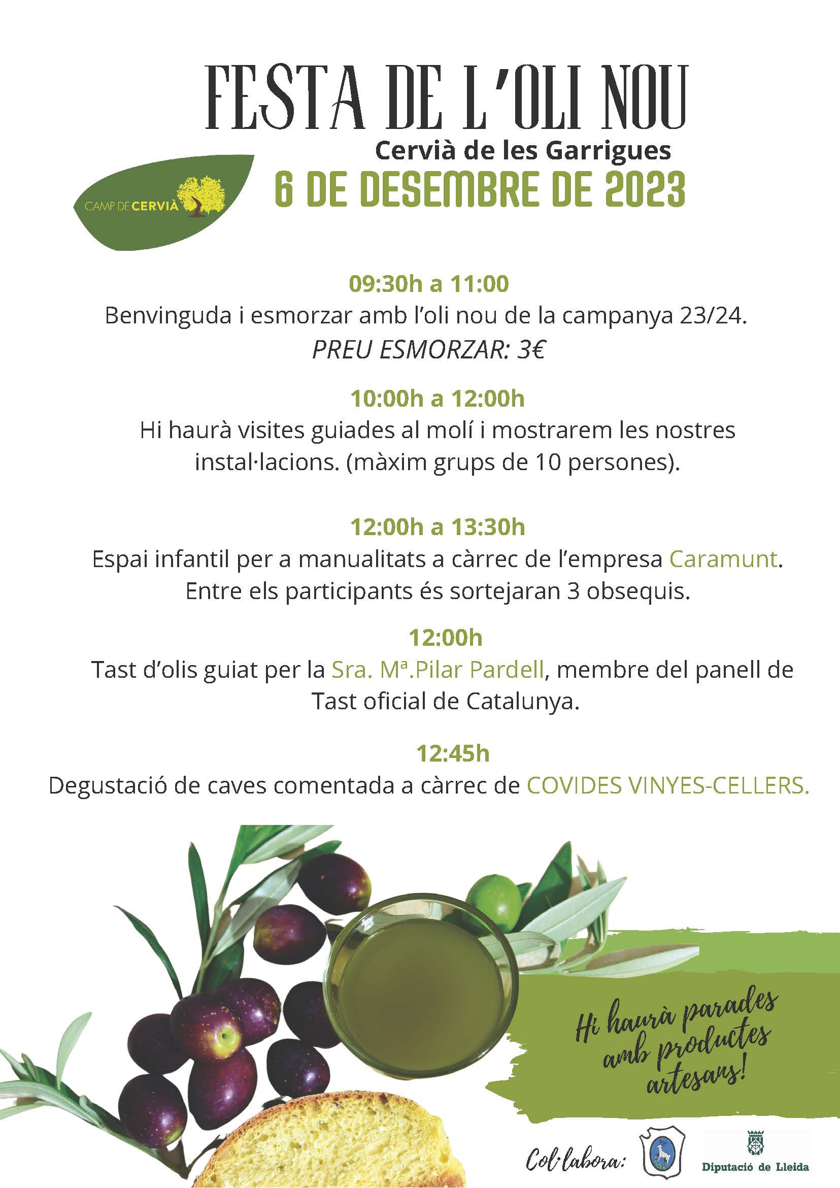 La Festa de l’Oli Nou de Cervià de les Garrigues és una festa de caire gastronòmic i cultural organitzada per l’Ajuntament de Cervià i la Cooperativa Camp de Cervià amb la intenció de presentar l’oli nou, amb una programació d’activitats variades.